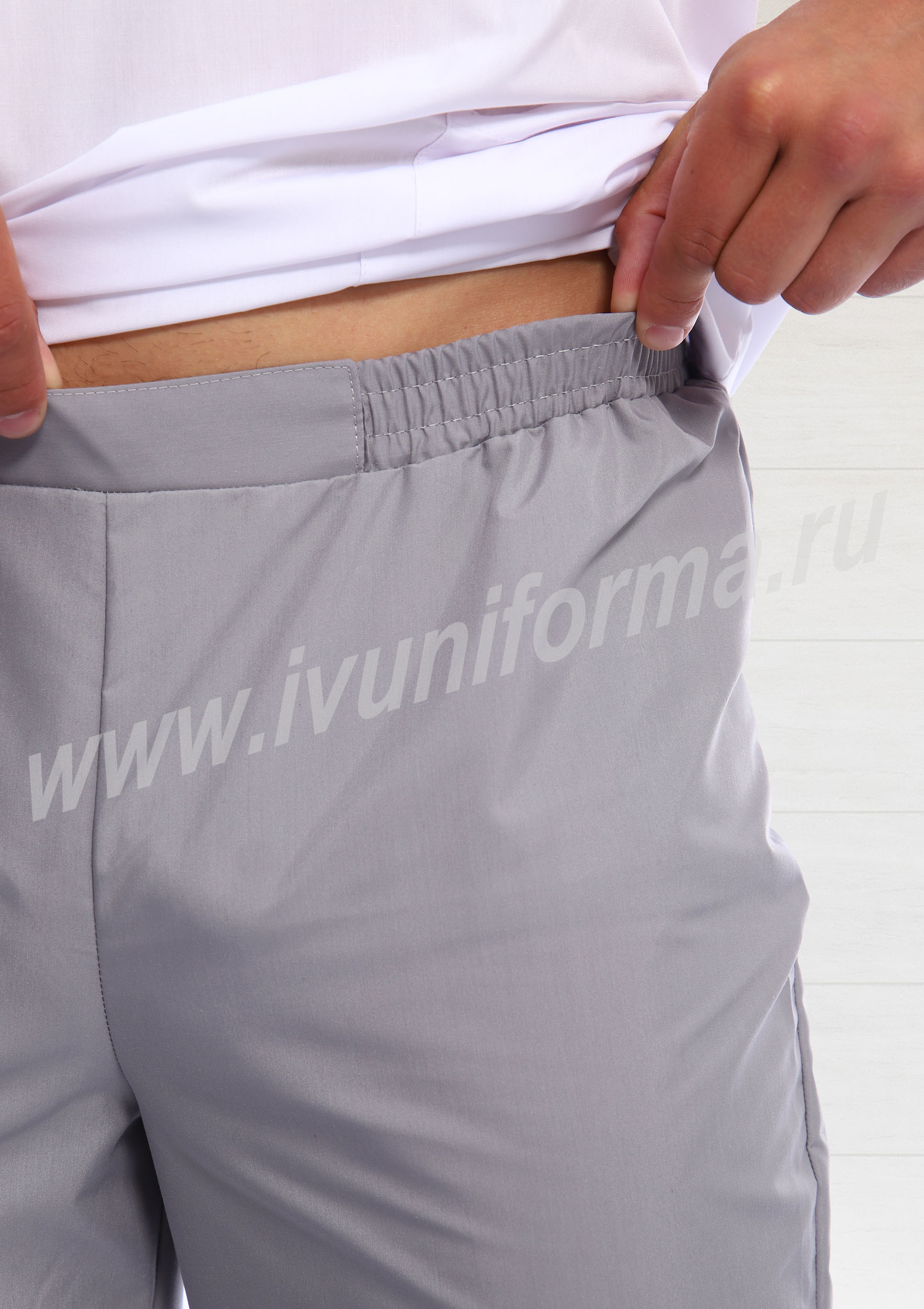 Стильный мужской костюм состоит из куртки и брюк. Блуза прямого силуэта средней длины с округлым вырезом горловины и коротким втачным рукавом. Полочка с отрезными кокетками, двумя вместительными накладными карманами внизу и нагрудным карманом с левой стороны. Спинка с отрезной кокеткой. Рукава и кокетки выполнены из отделочного материала, делая костюм, одновременно, заметным и элегантным. Брюки прямые на эластичном поясе, со вставкой для комфортной посадки на талии. Костюм прост в уходе, удобен и практичен, предназначен для медицинских работников и работников сферы обслуживания.